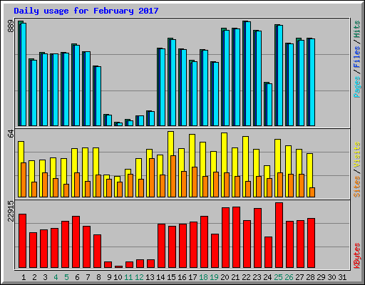 | Day | Hits | Files | Pages | Visits | Sites | KBytes | ||||||